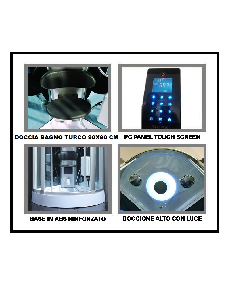 Splendida Cabina Idromassaggio di ultima generazione con Piatto Doccia in ABS rinforzato, misure cm 90×90 con Bagno Turco Sauna – Ozono – Bluetooth, Cromoterapia. Vetro Temperato Oscurato da 6,5mm, Computer Panel Touch Massaggio Plantare, Telefono con Vivavoce ed altri optional descritti nel dettaglio in inserzione.