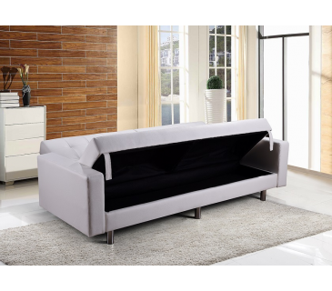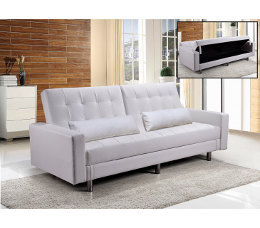 DIVANO LETTO IN ECOPELLE BIANCO RECLINABILE CON CUSCINI DOPPI E CONTENITORE