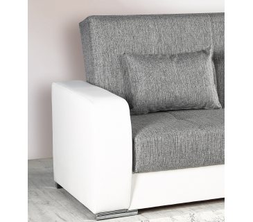 DIVANO LETTO ECOPELLE / MICROFIBRA BIANCO / GRIGIO RECLINABILE CUSCINI DOPPI CON CONTENITORE