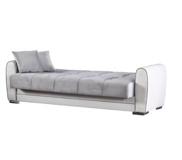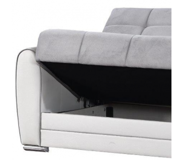 DIVANO LETTO ECOPELLE / MICROFIBRA BIANCO / GRIGIO RECLINABILE CUSCINI DOPPIO CON CONTENITORE