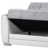 DIVANO LETTO MICROFIBRA GRIGIO / BIANCO GHIACCIO – EFFETTO NABUK – RECLINABILE CON CUSCINI DOPPI CON CONTENITORE