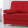 DIVANO LETTO IN MICROFIBRA ROSSO – EFFETTO NABUK – RECLINABILE CON CUSCINI DOPPI E CONTENITORE