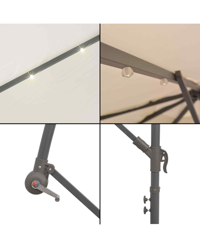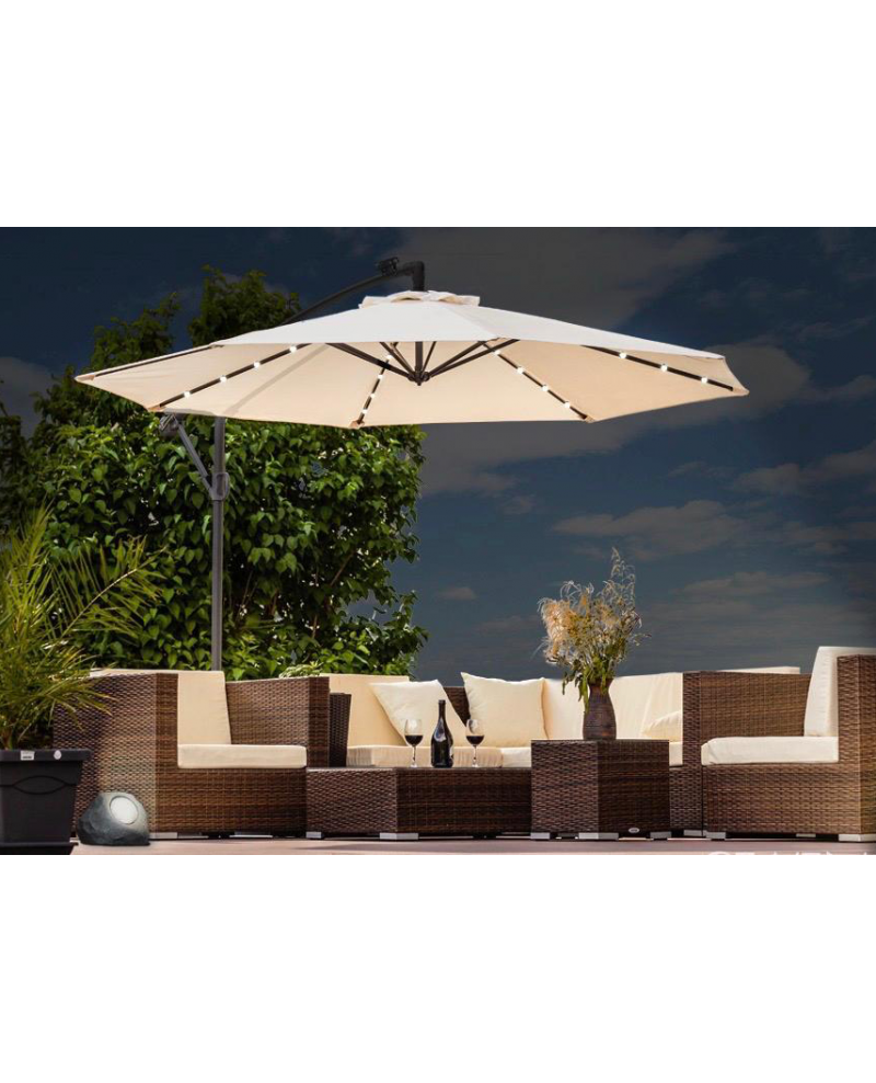 ATTENZIONE LA NOSTRA OFFERTA SI DIFFERENZIA DALLE ALTRE POICHE’ IL DIAMETRO DELL’OMBRELLONE E’ DI 300 CM, CON UNA SUPERFICE DI COPERTURA QUINDI PIU’ AMPIA, ED INOLTRE DOTATO DI 24 LUCI LED APPLICATE LUNGO I RAGGI DELL’OMBRELLONE.