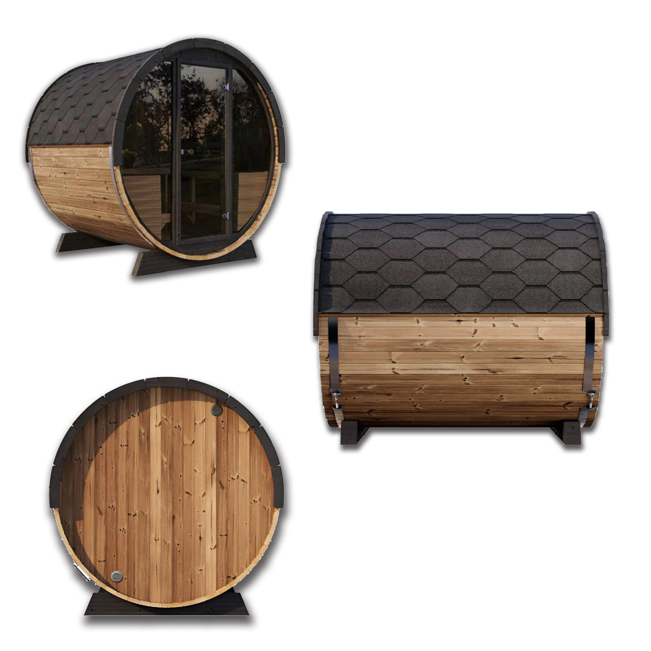 Sauna Barrel Sky View Vetro Oblo’ Design Moderno in legno Hemlock canadese (No Abete economico);