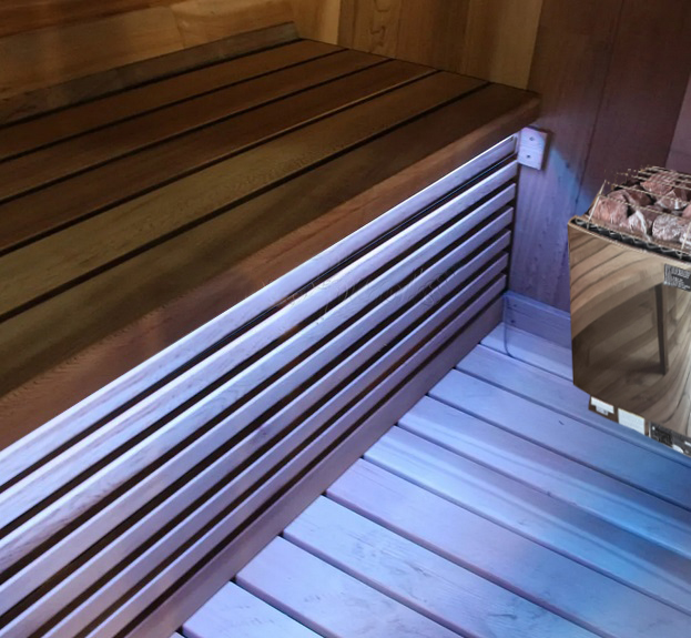 La sauna finlandese può essere installata sia all’esterno sia all’interno, e presentata, ha capienza di 6-8 persone con postazione “lounge”, con doppia panca speculare, ed è disponibile nella misura: 210x180x215cm. QUESTA VERSIONE PROFESSIONAL Viene realizzata in legno hemlock (legno Canadese (NO ABETE)), una tipologia di legno preferenziale per la costruzione delle saune. La stufa Harvia porta al raggiungimento di una temperatura di 90° a calore secco, e la cabina sauna è in grado di isolare il calore attraverso delle pareti con coibentazione e del vetro temperato di spessore 8 millimetri. La potenza della stufa per la sauna da i10x180 è di 6 o 9 kw eco-tech (con abbattimento del 65% del consumo). La Stufa è modello Harvia a pietra, rinomata marca leader del mercato da molti anni).