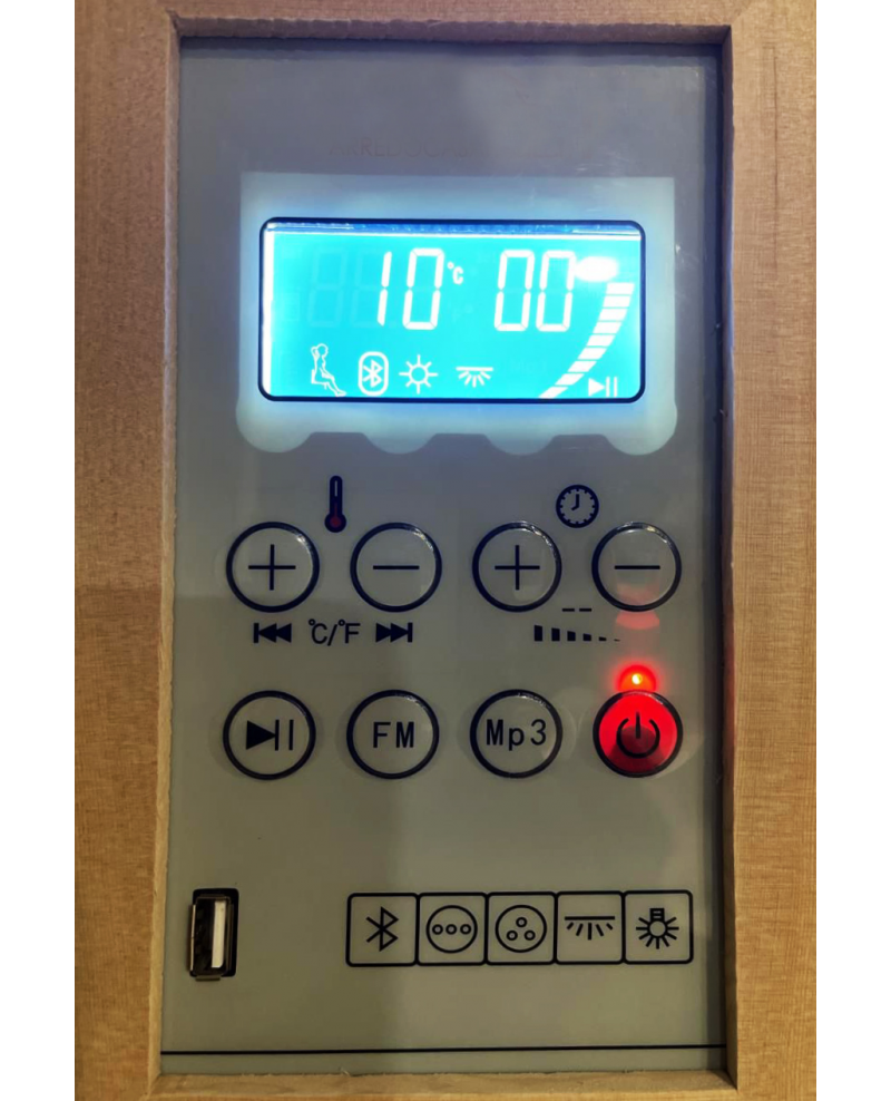 SAUNA INFRAROSSI FINLANDESE MULTIFUNZIONE 180X140X190CM – 4-6 posti CON RADIO PC MP3 + MP4 + USB + OZONO + AROMATERAPIA + BLUETOOTH + VENTILAZIONE + DOPPIO ALTOPARLANTE + LUCE CROMOTERAPIA A 7 COLORI + TIMER E LUCE DI SERVIZIO – VETRO 8MM – ELEMENTI RISCALDANTI IN CERAMICA DA 2700watt. NUOVA TECNOLOGIA CON ELEMENTI IN CERAMICA ECO-TECH – VEDI SOTTO TUTTI GLI ACCESSORI – SUPER ACCESSORIATA;