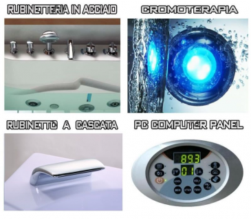 Vasca Idromassaggio Doppia, 170x120x61 22 Idrogetti, Riscaldatore Termostatico, Luci per Cromoterapia, Ozonoterapia e Rubinetto a Cascata. Dotata di Doppia Pompa. Dettagli Optional riportati in inserzione.