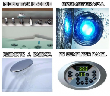 VASCA DA BAGNO IDROMASSAGGIO FULL OPTIONAL VASCA DOPPIA CHE MISURA 180 CM X 140 CM X 72 CM.NUOVO MODELLO DESIGN MODERNO, PRODOTTO FULL OPTIONAL! ATTENZIONE:IL NOSTRO PRODOTTO SI DIFFERENZIA DA TUTTI I MODELLI PRESENTI IN ALTRI NEGOZI, POICHE’ POSSIEDE TUTTE LE SEGUENTI CARATTERISTICHE INCLUSE ED ORDINATE APPOSITAMENTE:- WHIRLPOOL PUMP POTENZIATA DA 1,5 HP;- 5 IDROGETTI PICCOLI IN OTTONE;- 6 IDROGETTI GRANDI CROMATI;- 8 IDROGETTI AIR POOL;- SALVAVITA ELETTRICO INCLUSO;- COMPUTER MULTIFUNZIONE INCLUSO CON CONTROL RADIO;- DOCCIONE MULTIFUNZIONE;- T-SHAPE PRESA D’ACQUA;- TUBI RINFORAZATI PER LA CIRCOLAZIONE DELL’ACQUA;- REGOLATORE ACQUA CALDA – ACQUA FREDDA;- COMMUTATORE TERMOSTATICO;- LUCE SOTT’ACQUA PER CROMOTERAPIA ED ILLUMINAZIONE VASCA;- CUSCINI INCLUSI- RUBINETTERIA INCLUSA;- ALTOPARLANTI;- RUBINETTO CON FUNZIONE CASCATA AMERICANA INCLUSO (DEL VALORE COMMERCIALE DI 49,00 EURO);- POMPA AGGIUNTIVA SUPPLENTARE DA 0,25 HP AIR BUBBLE IDROGETTI AGGIUNTIVI INCLUSA (DEL VALORE COMMERCIALE DI 149,00 EURO).TOTALE 19 GETTI VASCA! SISTEMA IDROMASSAGGIO DI NUOVA CONCEZIONE. APPROFITTATE DI QUESTA OFFERTA – PREZZO NEI NEGOZI 3689,00 EURO. CARATTERISTICHE TECNICHE:VASCA IN ABS RINFORZATO;MISURE: 1800 mm X 1400 mm X 720 mm;INCLUSO NEL PREZZO:- POMPA AGGIUNTIVA SUPPLENTARE DA 0,25 HP AIR BUBBLE IDROGETTI AGGIUNTIVI.- RUBINETTO CON FUNZIONE CASCATA AMERICANA;NUOVO E POTENZIATO SISTEMA CON DOPPIA POMPA PER UNA ESPERIENZA DI IDROMASSAGGIO DI QUALITÀ. IN DOTAZIONE COMPRESA NEL PREZZO DEL VALORE COMMERCIALE DI 280,00 EURO, POMPA SUPPLEMENTARE. NB: VEDI DETTAGLI FOTO E SCHEMA TECNICO IN GALLERIA FOTO. Spedizioni tramite corriere espresso, rapidissime, due-tre giorni lavorativi. Iva non inclusa nel prezzo. Spedizione iva inclusa. Possibilità di Iva agevolata al 4% per prima casa o 10% per ristrutturazione, diversamente l’iva sarà quella ordinaria con aliquota del 22%. Alla fine dell’acquisto contattaci per avere il modulo richiesta Iva.LIMITED EDITION FOR ITALYRUBINETTERIA INCLUSAIMBALLAGGIO RINFORZATO